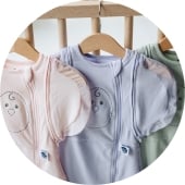 Zipper covers, cuddly seams and soft tags protect your baby’s skin.