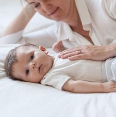 Moro Reflex disrupts your baby's sleep. You wrap them in your embrace to comfort and soothe them.